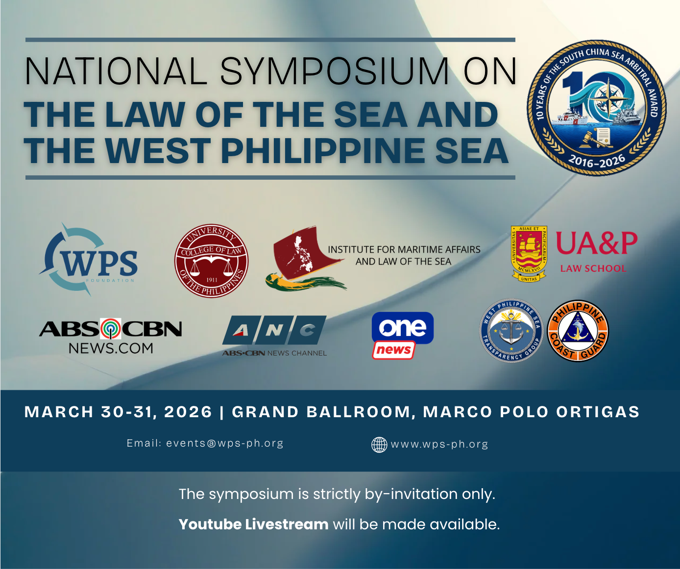 The National Symposium on the Law of the Sea and the West Philippine Sea, to be held at the Ballroom of the Marco Polo Hotel Ortigas on March 30-31 is a major national initiative marking the 10th anniversary of the 2016 Arbitral Award, bringing together the Philippine legal community and international experts to promote legal literacy, counter disinformation, and strengthen rule-of-law–based approaches to maritime disputes.