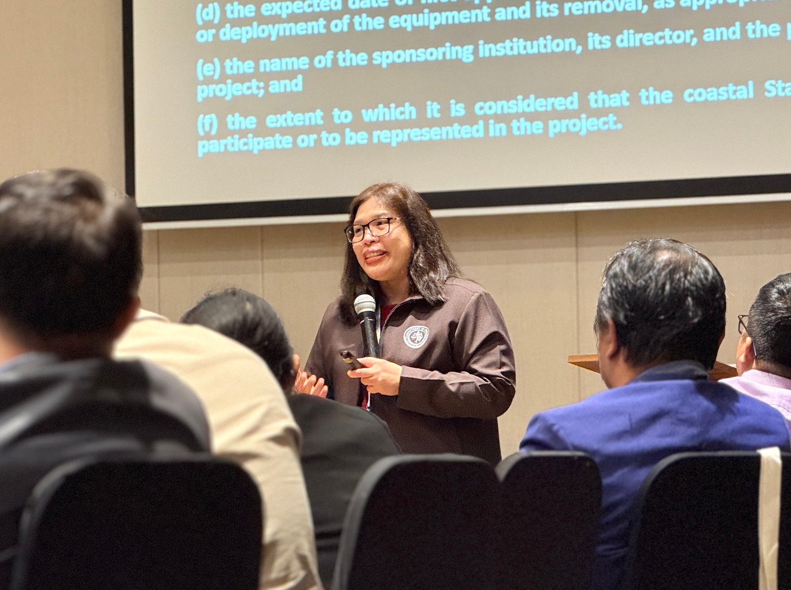 Atty. Fretti Ganchoon, Senior State Counsel at the Department of Justice β Philippines, gave a lecture on the Philippine Maritime Zones Act and national laws related to marine scientific research, enriching discussions on the legal and policy aspects of marine work.